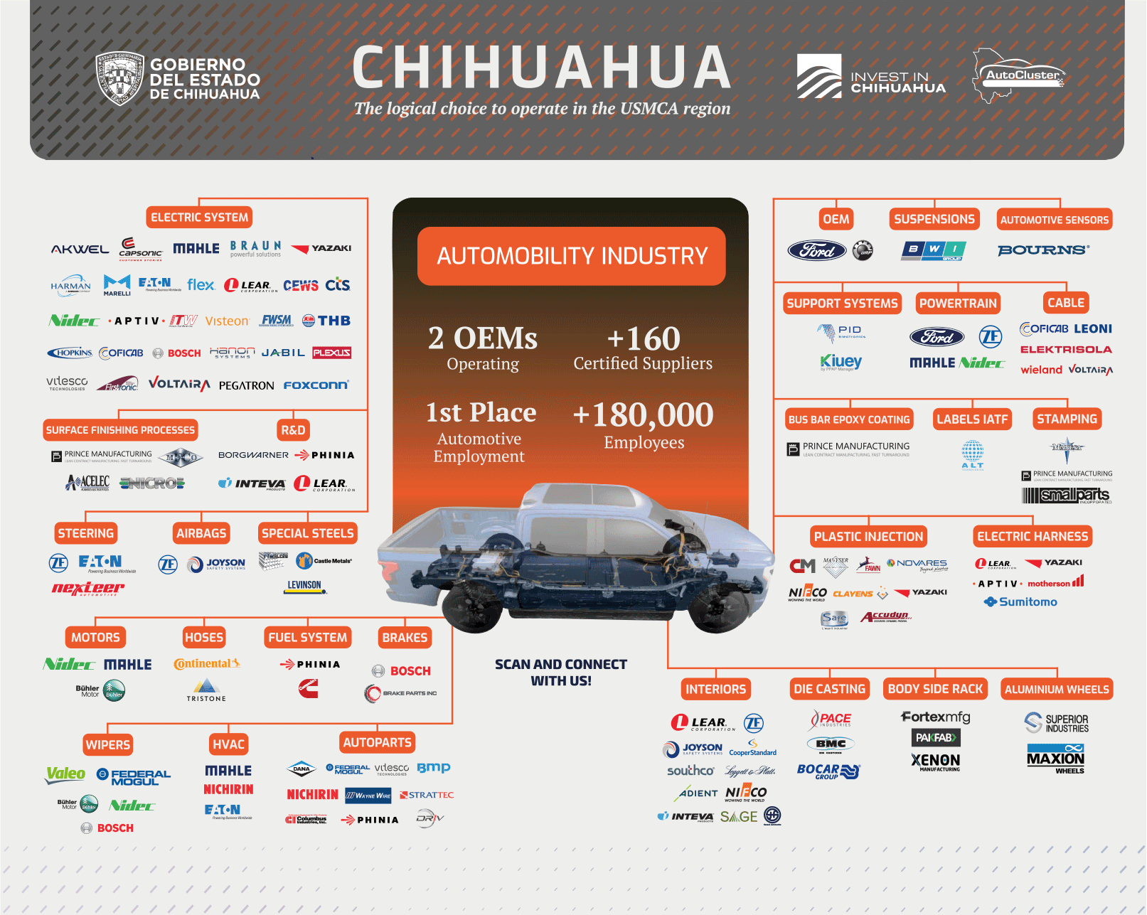 El Clúster Automotriz de Chihuahua (AutoCluster Chihuahua) busca consolidar al Estado como un hub automotriz de clase mundial, abierto a oportunidades de crecimiento para compañías internacionales que busquen integrarse a las cadenas de proveeduría de sus miembros.